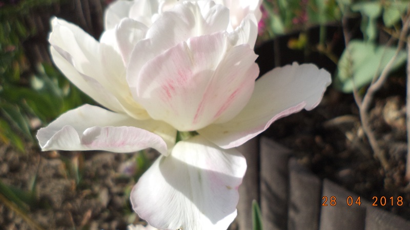 Za to w miejscu gdzie jest zawsze zbita, gliniasta ziemia rósł sobie jakiś przypadkowy jeden tulipanek strzępiasty,
