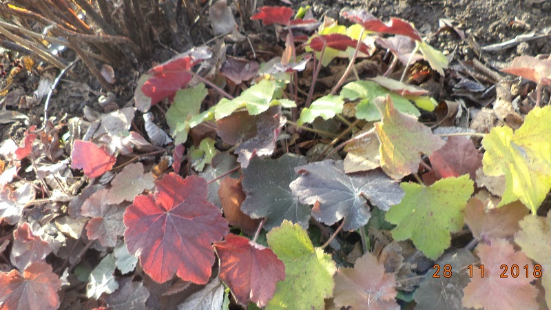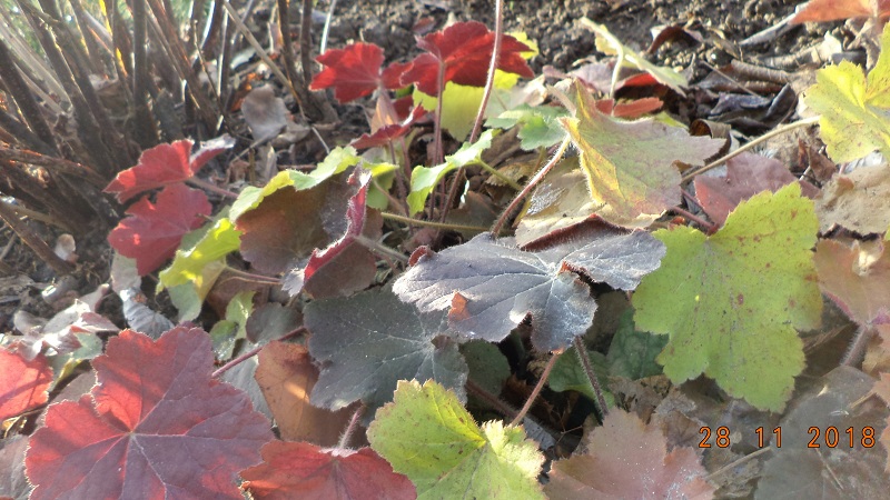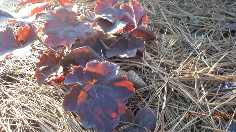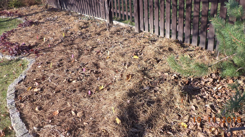 Hosty i żurawki sobie śpią pod igliwiem i gałązkami sosnowymi.