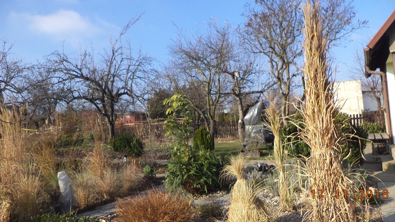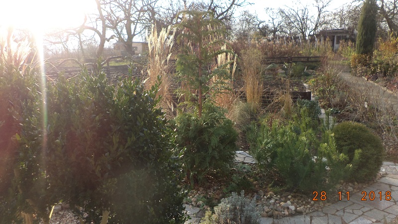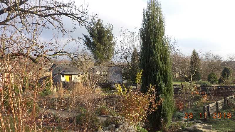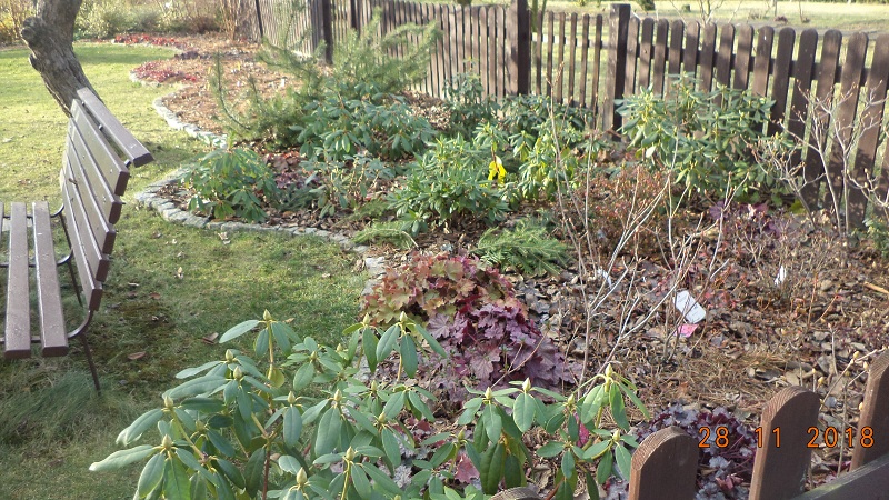 Dzisiaj pogoda zachęciła mnie do odwiedzenia działki, przy okazji zawiozłam gałęzie świerkowe na okrycie roślinek na skalniaku.