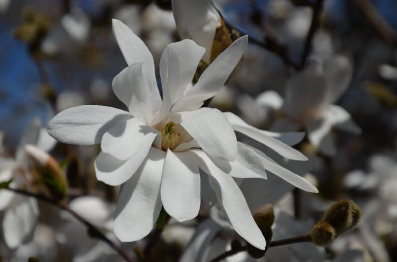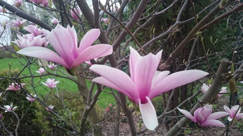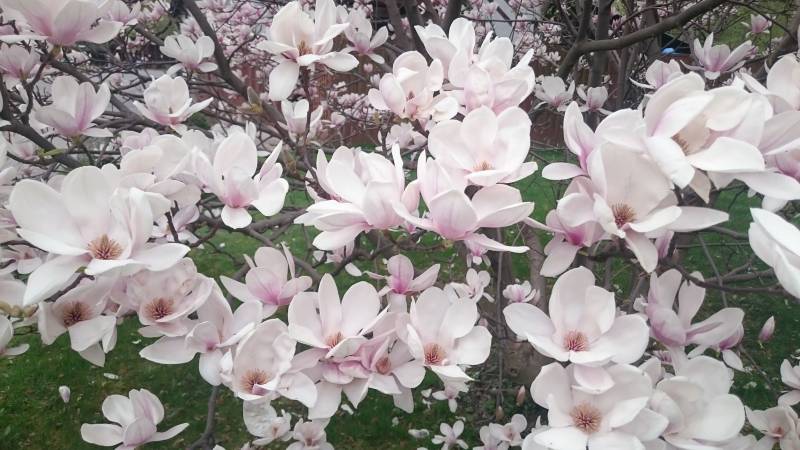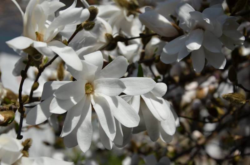 Niesamowity spektakl kwiecia, magnolia stellata chyba najbardziej wyrywna. To chyba moja ulubiona odmiana, kwiatuszki ma skromniejsze ale urocze.