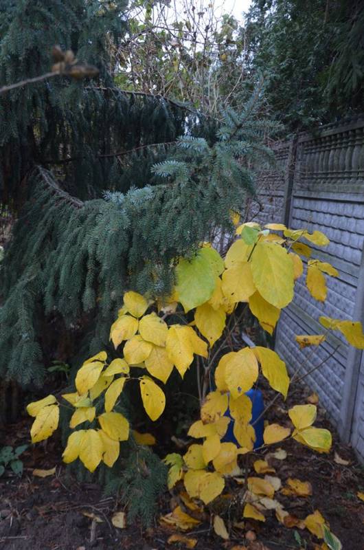 Całkiem przypadkowo ale bardzo się z tego cieszę. Rh 'Dopey' wysilił się teraz zupełnie niepotrzebnie, no bo wydaję mi się, że pączków na wiosnę nie zachował. Ale jeszcze dokładnie zobaczę, jak będę następnym razem na działce.