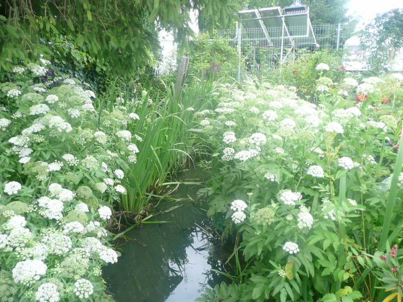 Nie znam się na baldaszkowatych, ale rów ładnie wygląda z tą roślinką :) U mnie w ubiegłym sezonie rosło coś podobnego na hostowisku - listki miało bardzo ażurowe, podobne do natki marchwi. Zostawiłam nasiona i teraz mam sporo siewek, więc nieco je musiałam przetrzebić. Z moich obserwacji wynika, że jest chyba roś think: liną 2 -letnią i zakwitnie w przyszłym roku.
