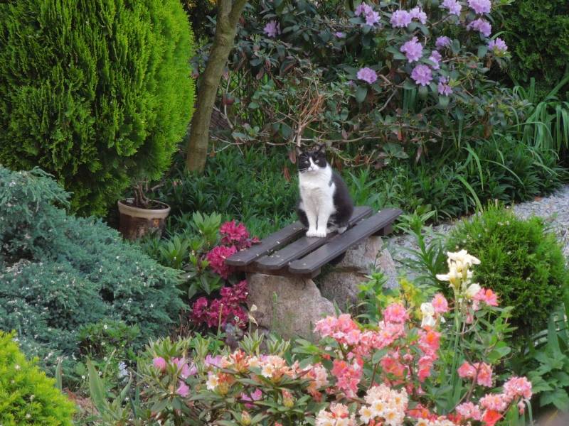 Dziękuję za tyle ciepłych słów .....ale powiem Wam ,że ciężko mi się chodzi po działce bez kociego cienia....i nie mam z kim pogadać :placz :placz :placz ,dzisiaj wymyśliłam ,że zrobię napis -ogród Balbiny......kilka kotów już w nim odpoczywa ,ale ona jedna kochała go.....latem praktycznie z niego nie wychodziła ......pierwsza moja myśl też była ,że się czymś struła-mąż pytał czy nie mam jakiegoś nowego zielska.....,ale miałam już kiedyś dwa otrute koty i zachowywały się inaczej.....zresztą gdybanie niczego nie zmieni :placz :placz :placz -mam nadzieję ,że znalazła nowy ogród do pilnowania.....