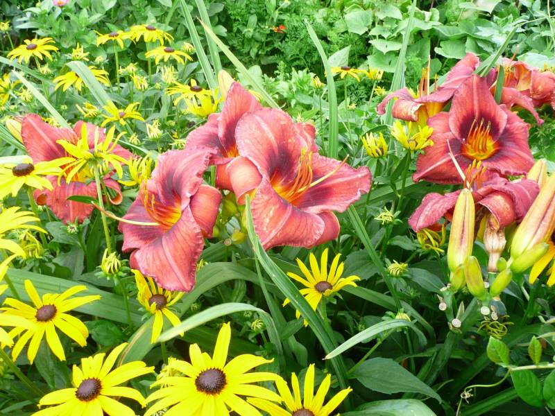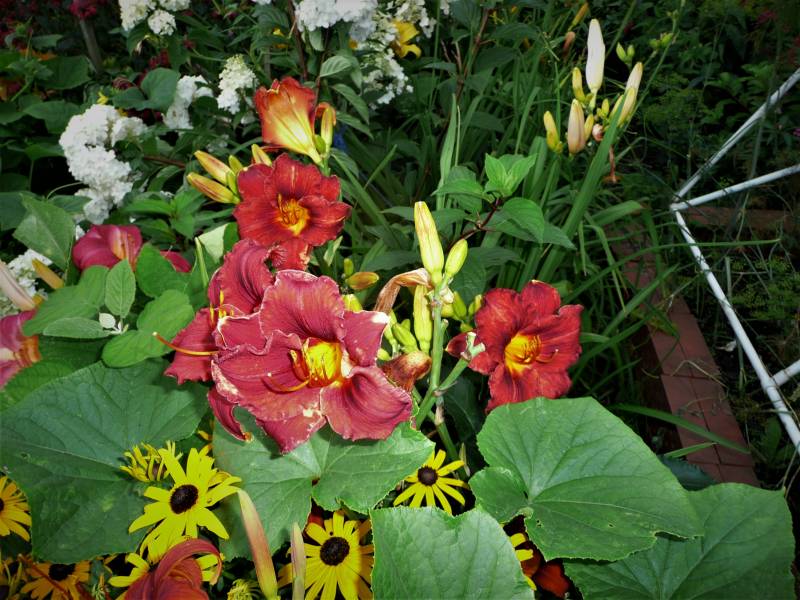 Liliowce u Ciebie kwitną jak w bukietach z innymi kwiatami. Pięknie i ciekawie to wygląda!
