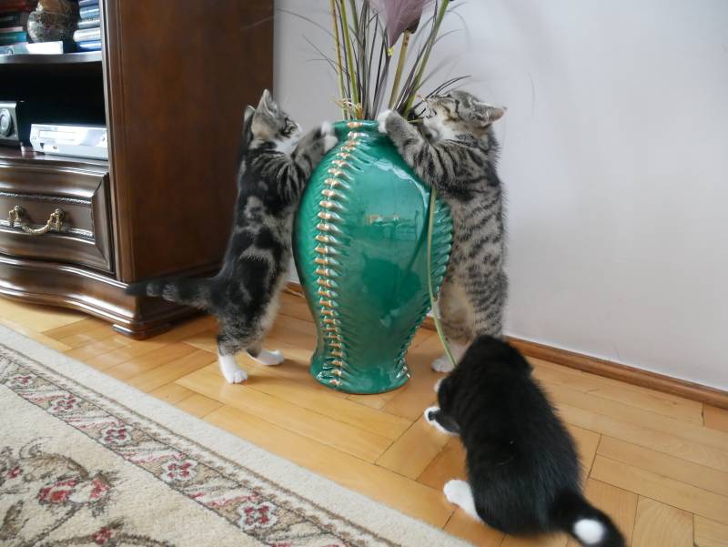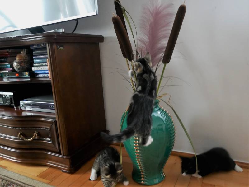 ,w domu niesamowity rozgardiasz bo wskakują do żwirku i pędem z niego wyskakują rozrzucając go wszędzie....ale jak się widzi taką radość życia to i człowiekowi lżej na duszy.