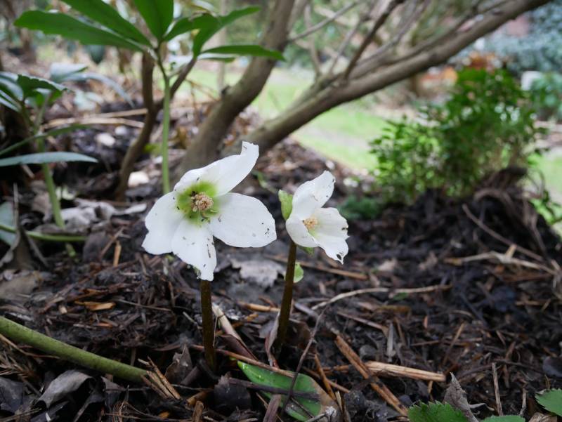 Przepiękne kępy ciemierników.