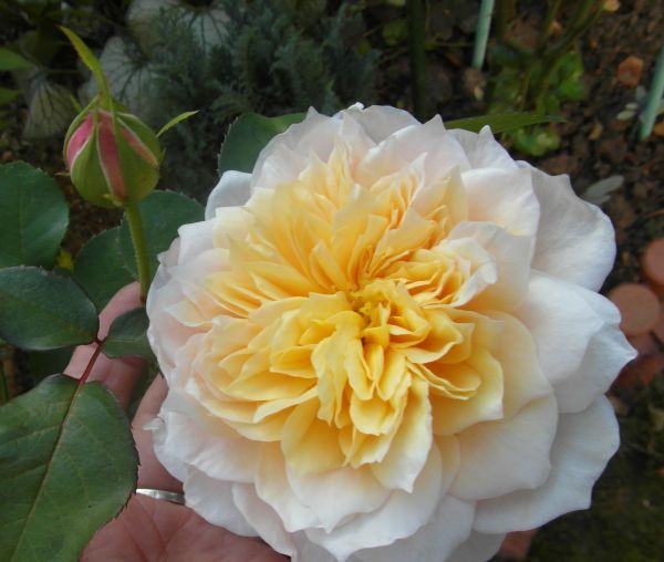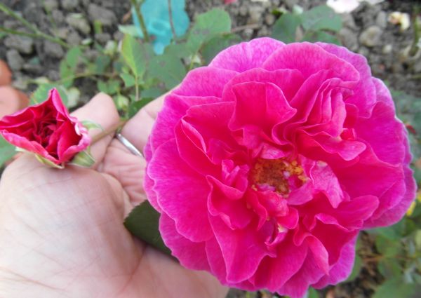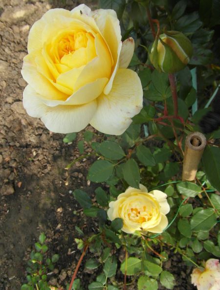 Pączki kwiatowe są podobne do róży Graham Thomas.Jesienią kwiaty są ciemniejsze i większe od kwiatów letnich.Porównaj liście.