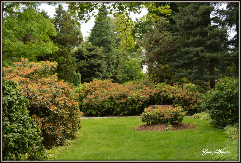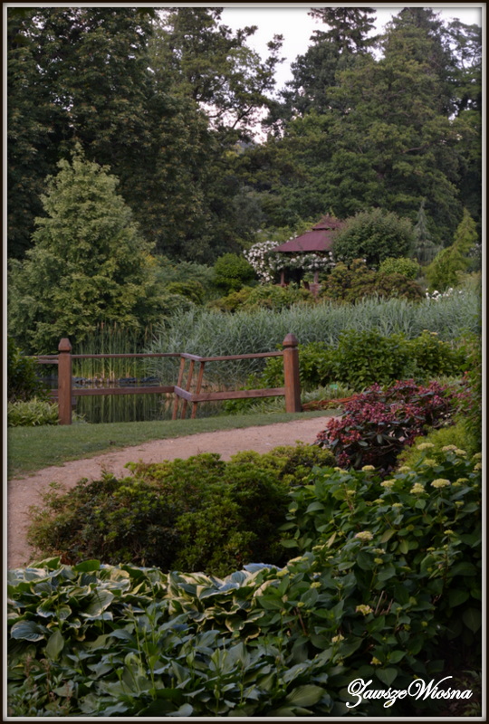 Czerwiec nie jest najlepszym miesiącem na zwiedzanie i podziwianie. Różaneczniki juz przekwitły , liliowce jeszcze nie zaczęły. Byłam tuż przed świętem piwonii - niestety piwonie w tym roku zakwitły wcześniej. Ale taki spacer, kiedy niby nic się nie dzieje też ma swoje uroki. Można spojrzeć na znane miejsca z innej perspektywy. I ten luz, spokój, żadnych tłumów