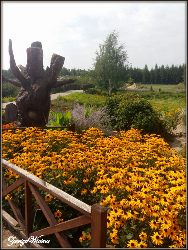 W piątek mieliśmy w planach "dzień dla dzieci", czyli "Magiczne Ogrody" w Trzciance. Miejsce bajeczne, niespotykane, nieco komercyjne ale i tak warte uwagi, zwłaszcza dla rodzin z małymi dziećmi. Obawiałam się , że tylko mała będzie zadowolona, a chłopcy (12 i 15 l) już są trochę za drorośli na tego typu atrakcje. Na szczęście wszystkim bardzo się podobało i każdy znalazł coś dla siebie : malutka - zamki, wróżki, baseniki, panowie - zjeżdżalnie, pływanie na tratwach, strzelanie z kuszy, park linowy, a ja - kwiaty - mnóstwo kwiatów