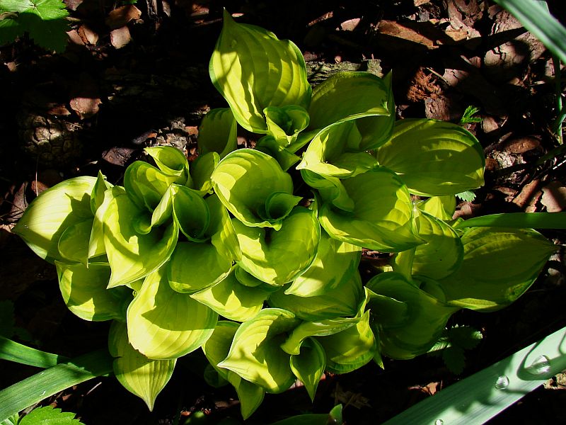 to pytam się, jak wyprosić gąsienice, które zwykle ujawniają się po fakcie swego obżarstwa? Może i Twoją 'Abiquę Drinking Gourd' nadżarła gąsienica... u mnie jednego roku dobrały się do 'Thunderbolta', innego do 'June' i 'Blue Ivory'... a to wszystko hosty ślimakoodporne... kolejnego po powrocie z wakacji zobaczyłam dziury we 'Fragrant Bouquet'... to nie są miłe widoki