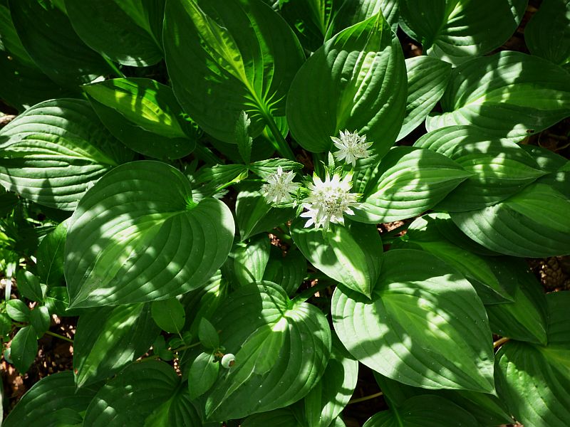 ale... jak tak sobie idę z kawą do ogródka i gdziesik przycupnę i zapatrzę... na te hostowe liściory i listeczki, na paprotne pastorałki czy właśnie na jarzmiankowe kwiatuszki, to odczuwam... zwał jak zwał... zespolenie z naturą - spokój - szczęście... nic mi wtedy więcej nie trzeba... no może dolewki tejże kawy, by kontemplować dalej