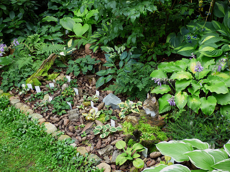 tym razem w menu oprócz 'Arystokratki' znalazły się także 'Remember Me' i 'Abiqua Drinking Gourd'... no chyba że jeszcze czegoś moje oczy nie widzą, co w gąszczu paprotnim jest całkiem możliwe... wszystkie to hosty twarde, o dobrej substancji liścia... no ale takie to właśnie ta gąsienica lubi... taa... ale tak poza tym, to - odpukać! - ten sezon jest faktycznie niczego sobie, jeśli chodzi o fason, trzymany przez hosty, choć takich prosionków po ogródku kręci mi się całe mnóstwo... blee... i bezmuszlowe dziady też łażą... drugie blee