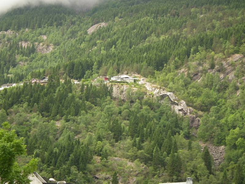 Tam domy są pobudowane na skałach a niektóre wysoko w górach tzw hytty