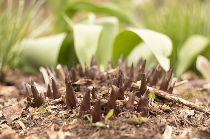 Danusiu epimedium ledwo od ziemi odrosło. Musiałam się dobrze przyjrzeć, czy już coś widać. Ale nie wiem, czy ubiegłoroczne liście wyciąć...