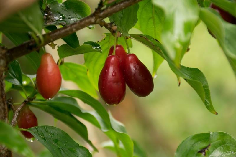Dojrzewają derenie jadalne. Ten jeszcze ma czas. W ubiegłym roku zawiązał pierwsze owoce, dosłownie kilka. A w tym...
