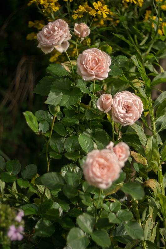 Róże zachowują się przedziwnie: Lavender Friendship zwykle oszczędnie kwitnąca w tym roku idzie na rekord. Natomiast niezawodna jak dotąd The Fairy dopiero oczy przeciera.