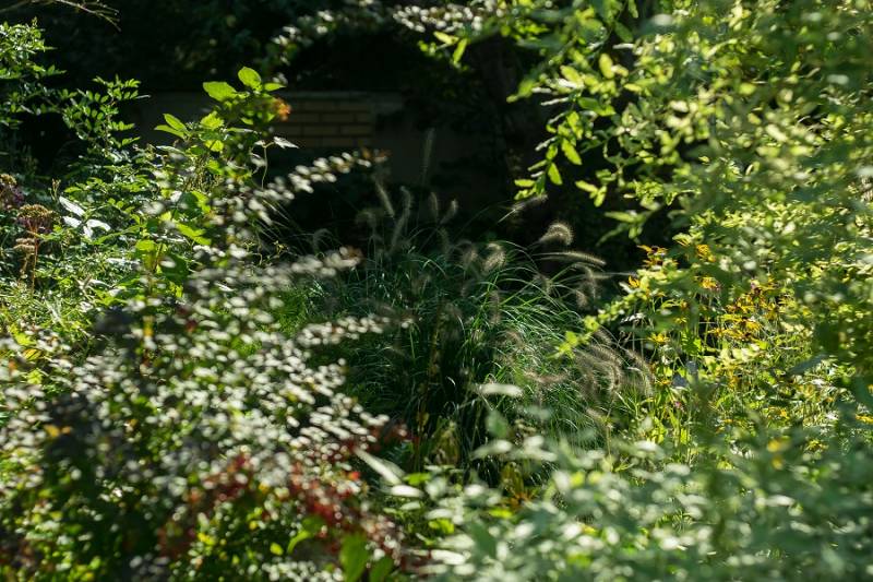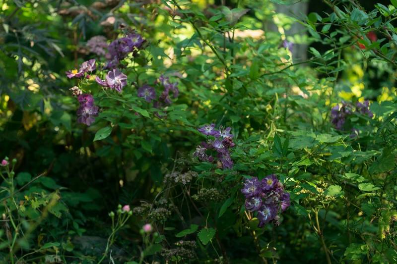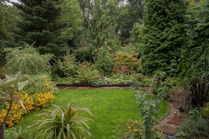 Danusiu u nas granice ogrodów gubią się w roślinności, ma to też niestety taki efekt, że rosnące drzewa i krzewy zacieniają nasz ogród coraz bardziej.