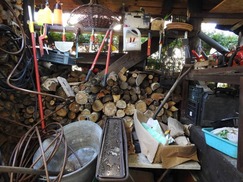 W Biskupinie resztki porządku po wrześniowej wizycie TV. W. ogarnął wowczas narzędzia, ale moich niewymownych i biusthalterów suszących się na trasie już nie...