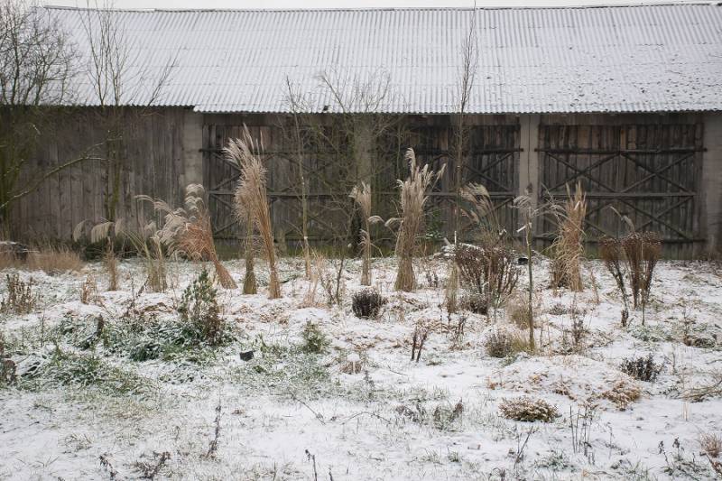 Przybyło nam traw... głównie miskantów, które W. powtykał, gdzie się dało. Z braku lepszego pomysłu i materiału wyściółkował wszystko starą słomą ze stodoły.