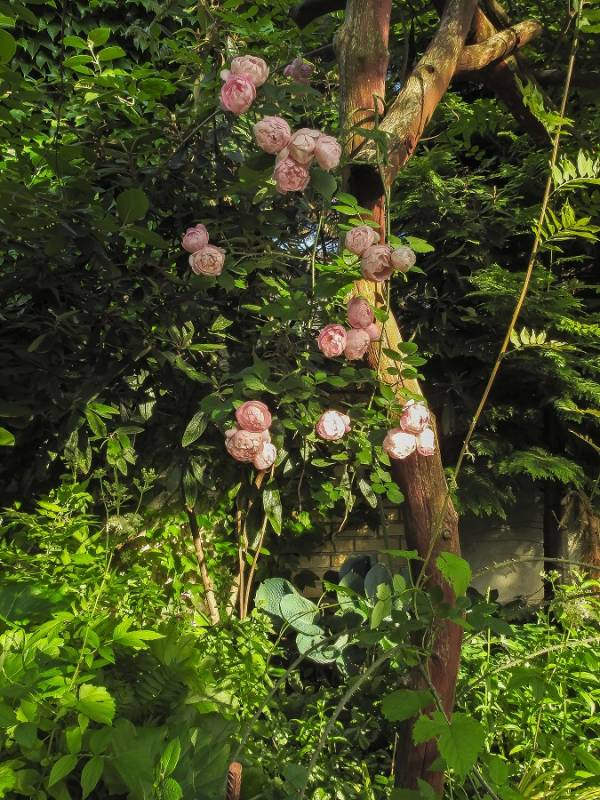 Uwilebiam ten pokrój Raubritter. Rośnie w półcieniu i najpierw żalowałam, że ją tu posadziłam, bo przez piewsze trzy lata kwitnienie było skromne. Ale teraz ma te popmoniki na przewieszających się pędach, co czyni ją jedną z piękniejszych w dżungli.