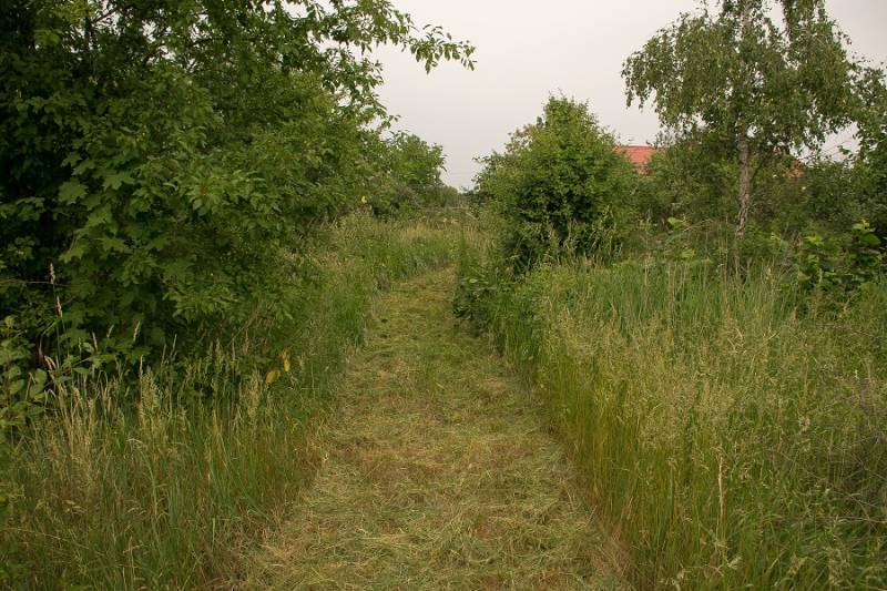 Do tej pory kosiliśmy wyłacznie kosą spalinową. Mniej dokładnie, dłużej i grubszych badyli nie brała. Teraz jeszcze ze dwa-trzy razy przejedziemy i w niektóre miejsca juz bedzie można normalną kosiarką wjechać. Czyli ja będę mogła właczyć się do działalności i szybciej pójdzie.