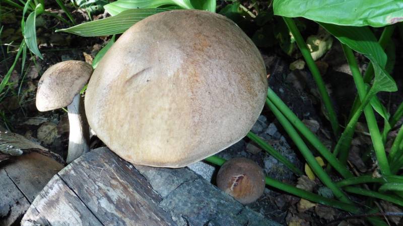 Kilka prawdziwków było przewróconych przez ryjące tam dziki. Pozwoliłam sobie jednego z glebą przeflancować do swego ogródka