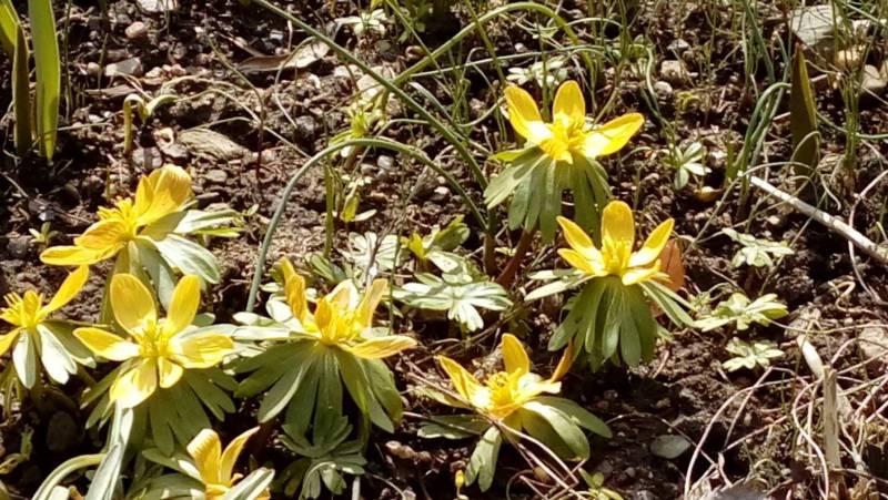 Trochę wiosny.Ranniki się specjalnie nie rozrosły i już przekwitają.