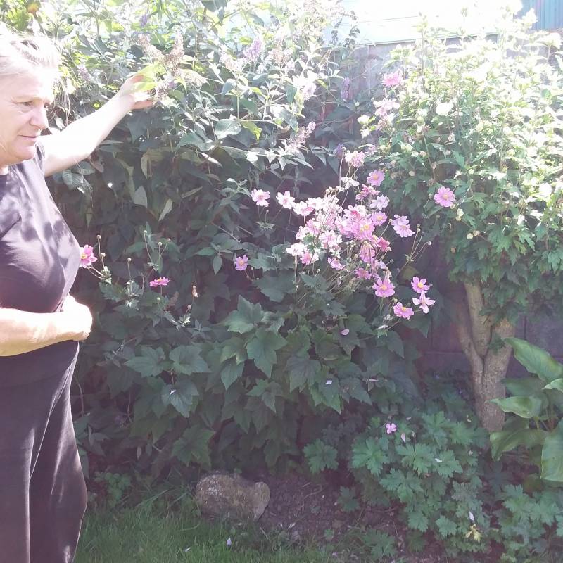 To prawdziwa zielonozakrecona walijska dusza. Nie mogłam wyjsc z podziwu Ile kwiatow mozna pomiescic na tak malej powierzchni jaką jest jej ogródek. Jestem przeszczesliwa że ją poznalam. Z tego wszystkiego zapomnialam nawet o imię zapytać. Zrobie to nastepnym razem, gdyż zgodziła się spotykac ze mną na pogaduszki o roslinkach .