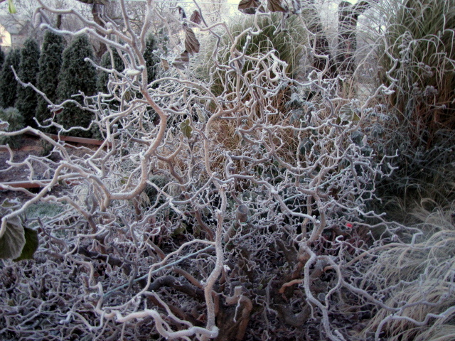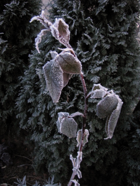 Co prawda w niektórych ogrodach pokazywanych na forum już zima a u nas późna jesień. Nie ma śniegu (za którym nie tęsknię), dzisiaj był kilkustopniowy przymrozek, który pięknie oszronił rośliny, niestety nie było słońca ale zrobiłam kilka zdjęć.