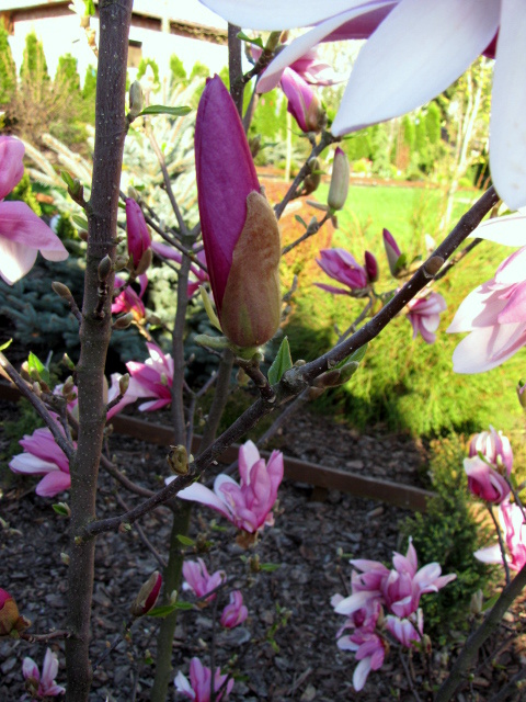 Zakwitła też magnolia przesadzona pod koniec marca. Mam nadzieję, że przeżyje.