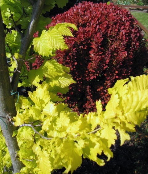 Leszczyna Red Majestic i klon jawor 'Esk Sunset