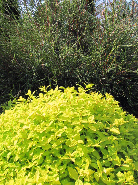 Tawułka Golden Princess i thuja 'Filiformis