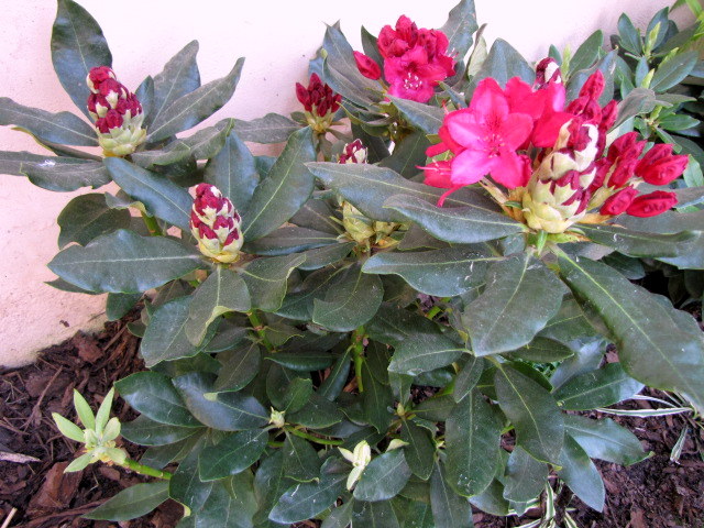 U mnie rododendrony jeszcze małe, ale też już maja pąki,