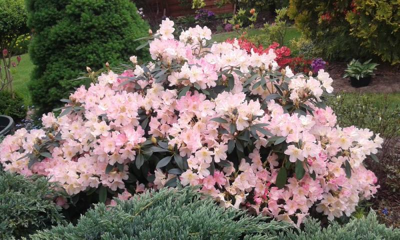 Pamiętam, gdy sporo lat temu, w Jeleniej Górze, gdzie studiowałam i w pobliskim Karpaczu, widziałam wyrośnięte, wielkie okazy rododendronów. nie miałam wówczas takiej wiedzy, jak dziś, więc mocno się dziwiłam, że takie dorodne. rotfl Nie wiem, czy moje mają szansę na taki piękny wzrost i obfitość kwitnienia. :angry: