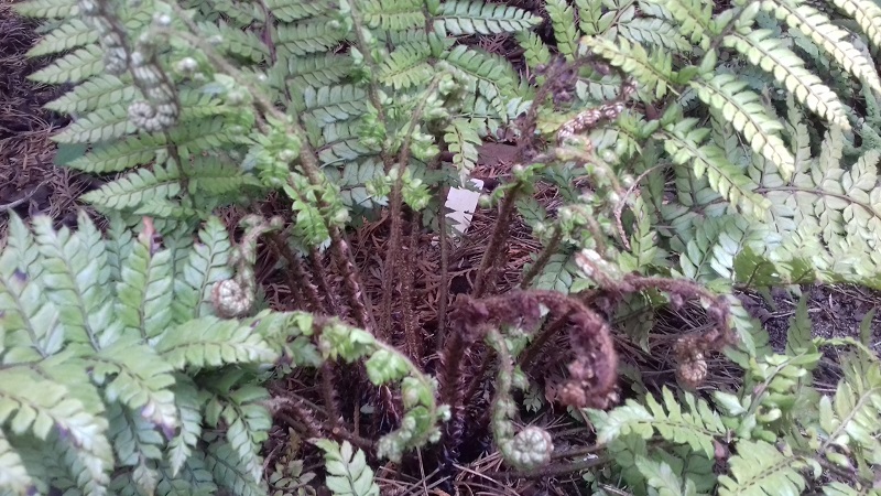Paprotnik Makino - pomimo okrycia niektóre młode zwijaski zbrązowiały..