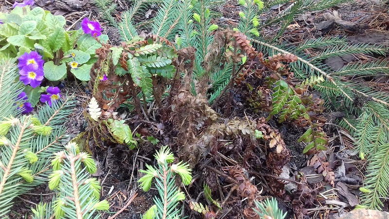młode frondy Paprotnika 'Jade' od Poli zbrązowiały a okrywałam ją dokładnie.. mam nadzieję, że się odbuduje..
