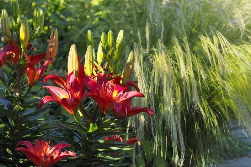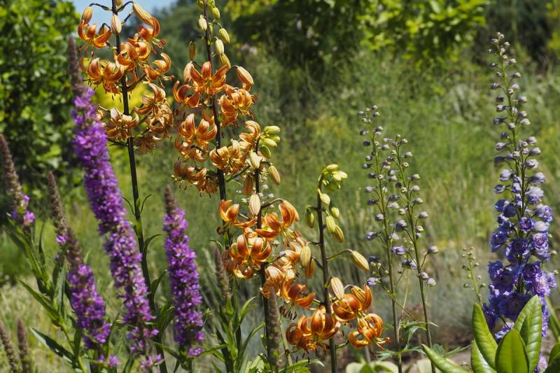 niskie lilie Sunset Matrix i Matrix (30-40 cm) zachwyciły mnie bardzo, bo fajnie można je wkomponować w zupełnie inne grupy bylin niż lilie wysokie