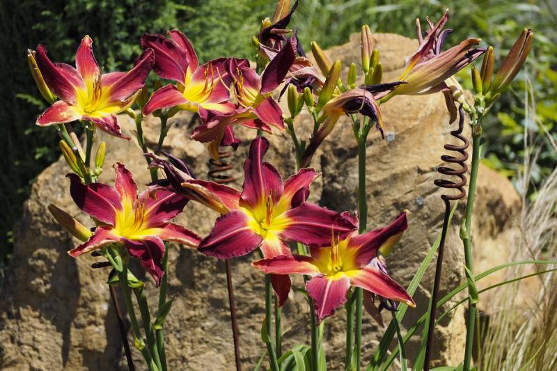 u podnóża skalniaka żurawka Gauguin, dobrze rośnie, łatwo się mnożny - polecam