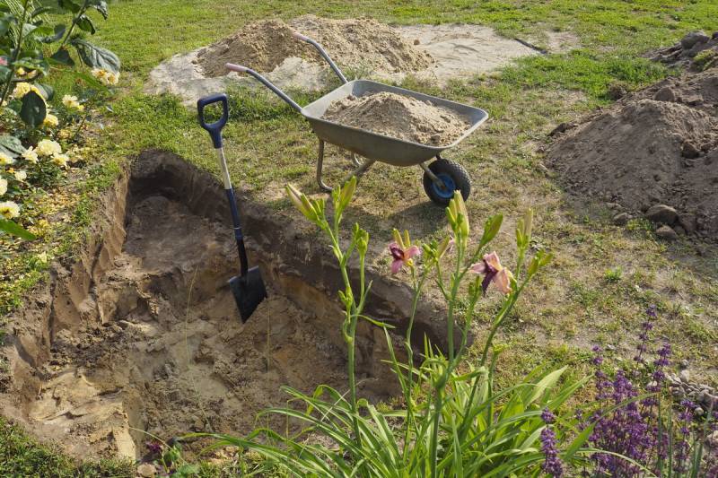 Na szczęście przygotowanie nowej rabatki to trochę takie dwa w jednym: Najpierw wykopuję dół na około 80 cm, aby wydobyć piach niezbędny przy układaniu ścieżek,