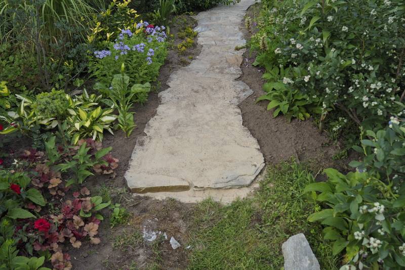 trochę kompostu i z powrotem wierzchnią ziemię z tego samego miejsca. Trochę poleży, opadnie, ubije się, i rabatka gotowa do obsadzeń, a do tego kilka metrów kamiennego szlaku.