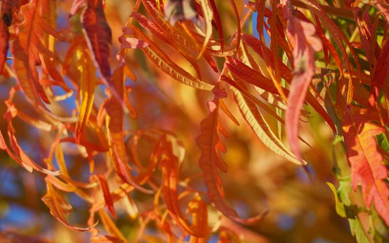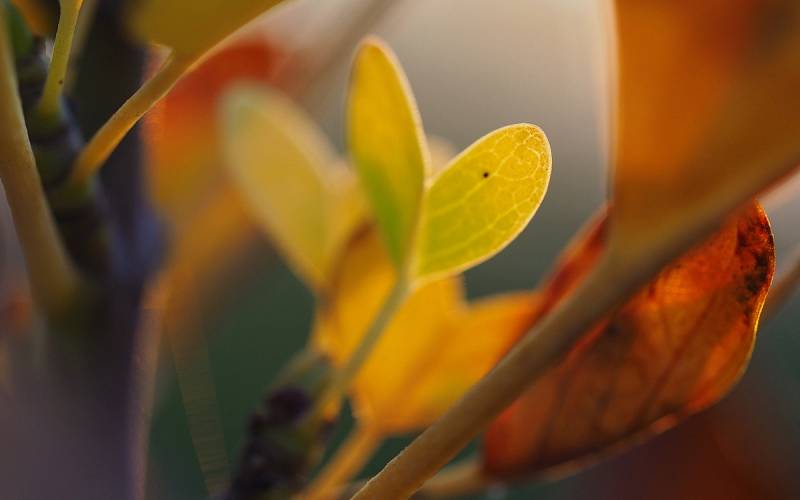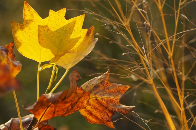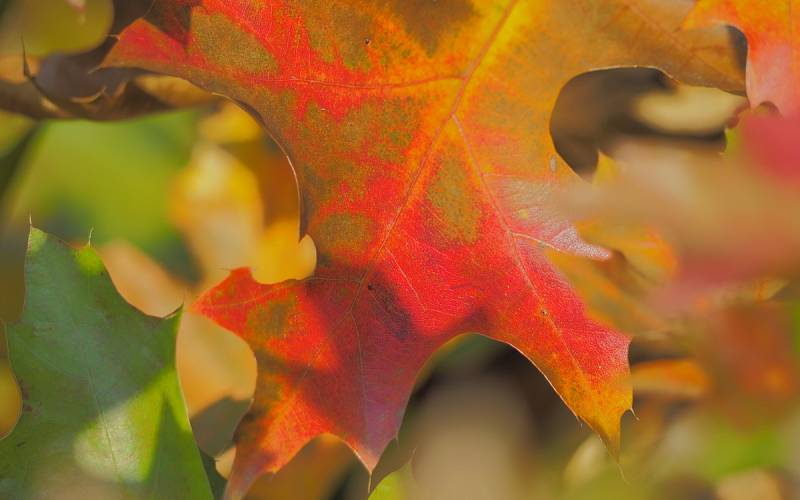 Na drzewie występowały równocześnie zielone, żółte i miedziane. W słońcu efekt naprawdę był wow