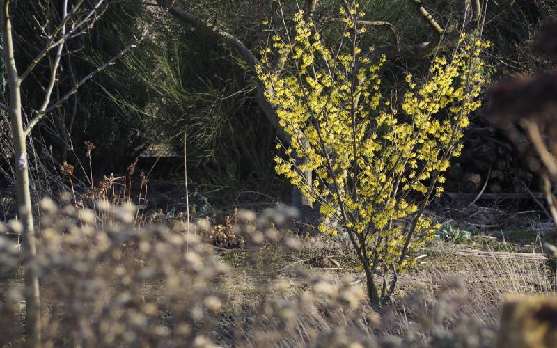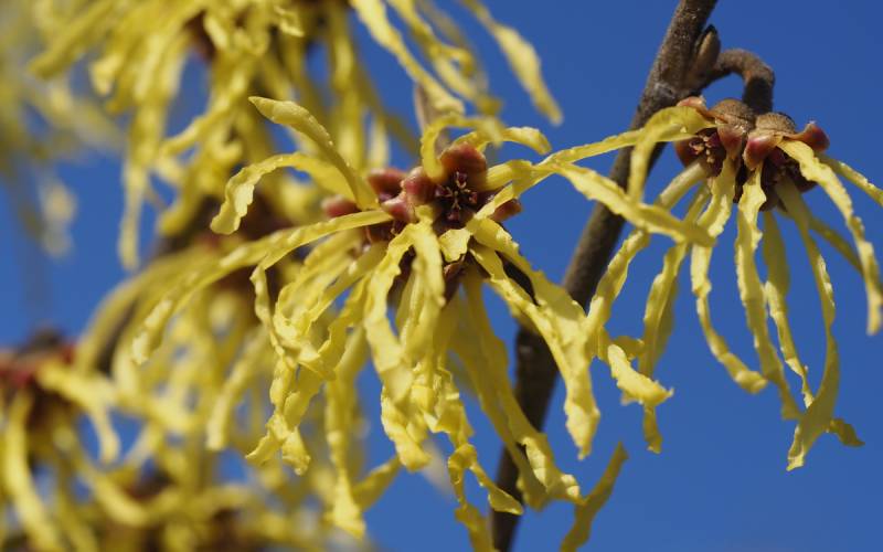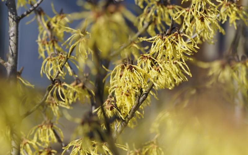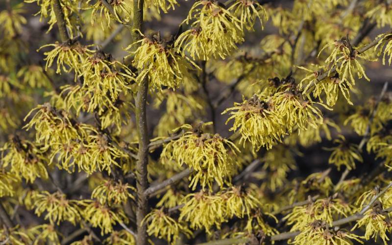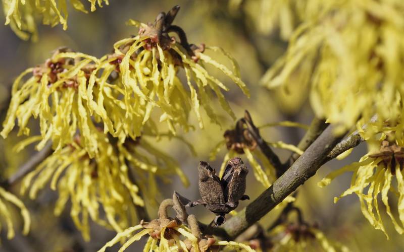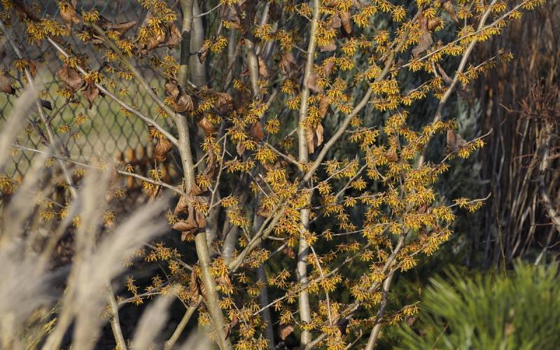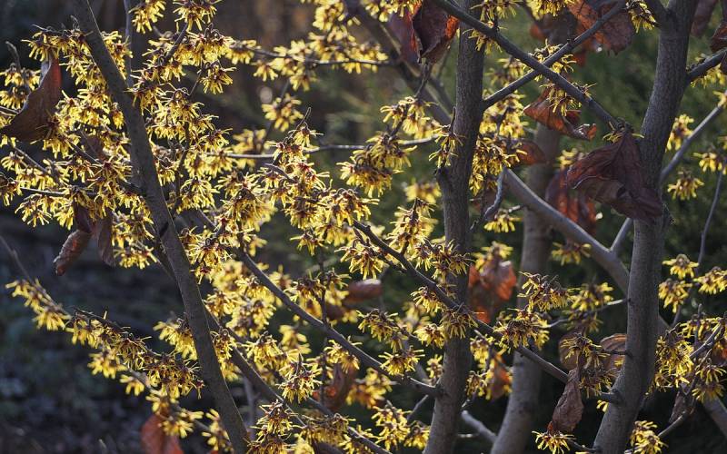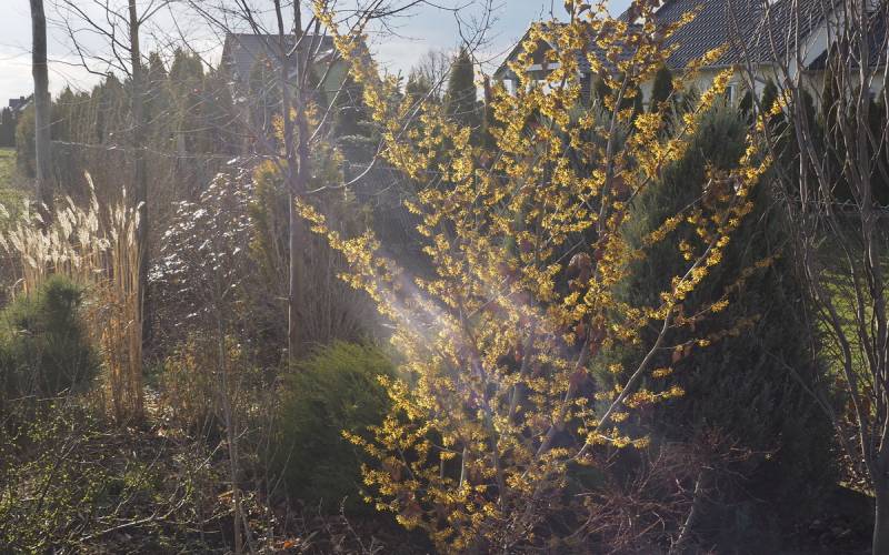 Arnold Promise ze swoimi jaskrawożółtymi płatkami. Jest jak forsycja, niezawodnie przyciągając wzrok. Z daleka jest zresztą często z nią mylony.