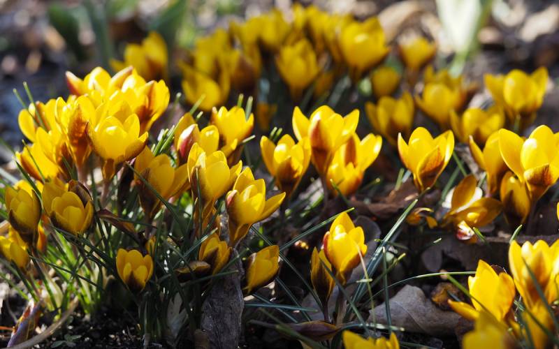 Oprócz oczarów kwitną też krokusy. Uzbierało się ich chyba z 30 odmian ale i tak w większości wyglądają łudząco podobnie. Więc chciałoby się rzecz "po co przepłacać".