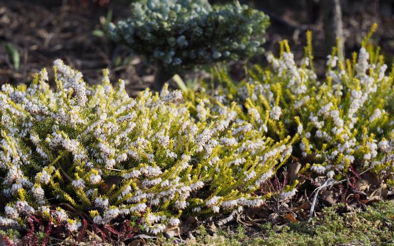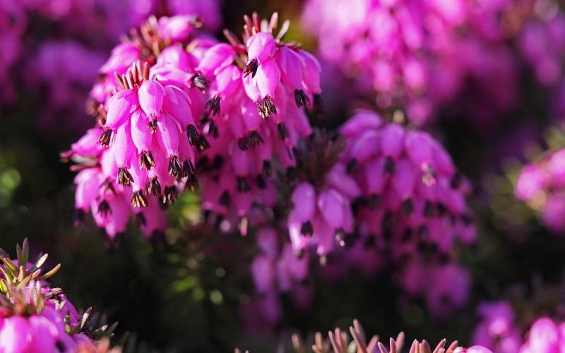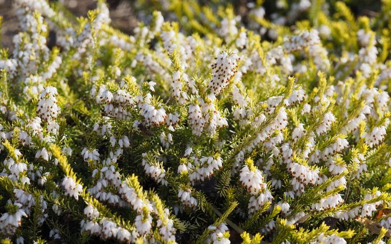 Bardzo obficie kwitną przede wszystkim wrzośćce, które wyglądają aż nienaturalnie.