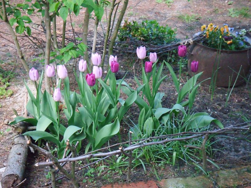 Fajny płotek przed tulipanami :) To pewnie ma powstrzymać tego uroczego stwora - Funię? wink-3 Ja też muszę niekiedy coś stawiać, aby mi psy nie wchodziły w kwiaty - może ściągnę pomysł od Ciebie :)