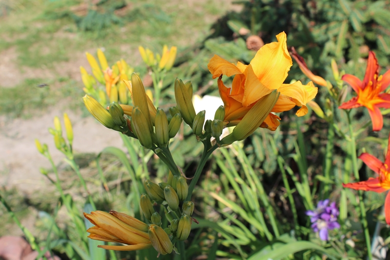 Wszystko powolutku zaczynało nabierać kształtu i koloru, ale sytuacja zmusiła do powrotu do rodzinnego miasteczka. Tu na dużej działce z malutkim domkiem rosły brzozy, świerki , orzechy włoskie i kawałek olbrzymiego żywopłotu z bukszpana. Wycięliśmy tylko jednego orzecha, reszta została. Problemem była ziemia, piaszczysta i kwaśna, dodatkowo nieogrodzona i 50 metrów od lasu, z którego podczas ulewnych deszczy, szorowały potoki kwaśnego piachu. Najpierw zaczęłam od wrzosowiska pod świerkiem, nawiozłam torfu z łąki. Zimą przyszła fala suchego mrozu i wszystko szlak trafił. Pod brzozami nie dało się nic wsadzić, bo masa splątanych korzeni nie pozwoliła nawet wbić szpadla. Z poprzedniego miejsca przywiozłam kilka roślin, niestety przeżyła tylko tawuła (chyba szara), która dziś ma ponad 2 metry i mahonia. Kupowałam i sadziłam przypadkowo rośliny. Nic nie chciało rosnąć, albo ja nie miałam czasu i zdychało.