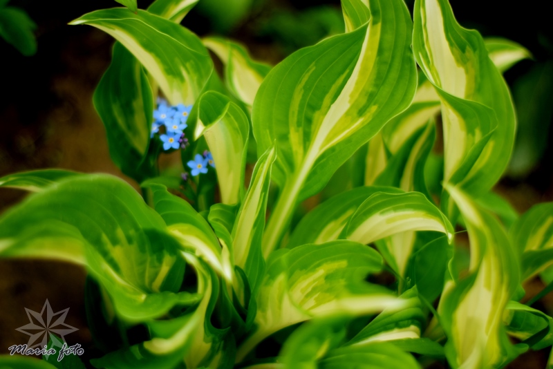 Majko miło mi, że Ci się podobają moje fotki :przytulam te słowa dają mi motywację i zachętę do kontynuacji...Kwiatuszki przy hoście to wszędobylskie niezapominajki.