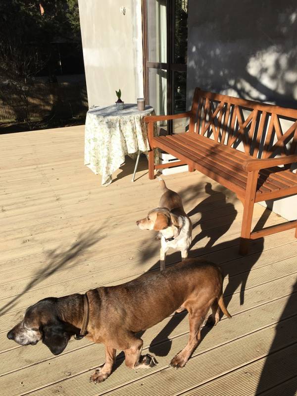 Za to moje dwa psy, jak tylko wypuszczę je bez kontroli na dwór zaraz lecą pod karmniki i wyjadają słonecznik, który rzucam na ziemię dla kosów.