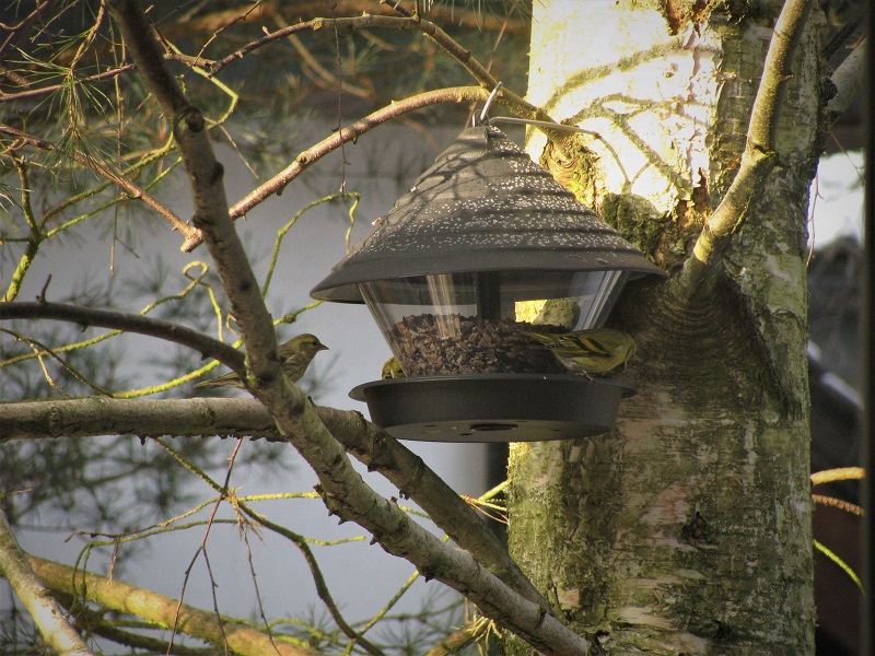 Najpierw czyżyki , które ten akurat karmnik przywłaszczyły dla siebie i siedzą tam jak na balkonie :P