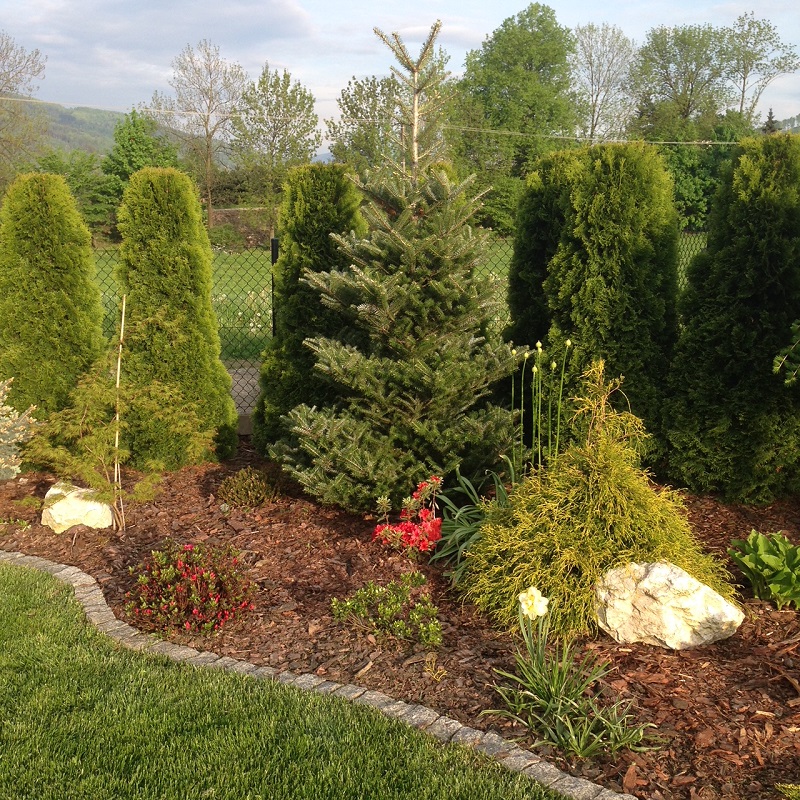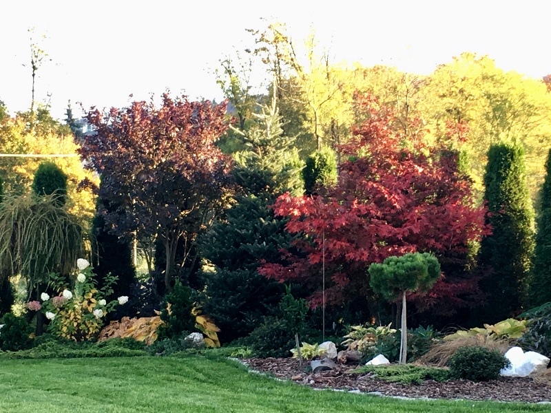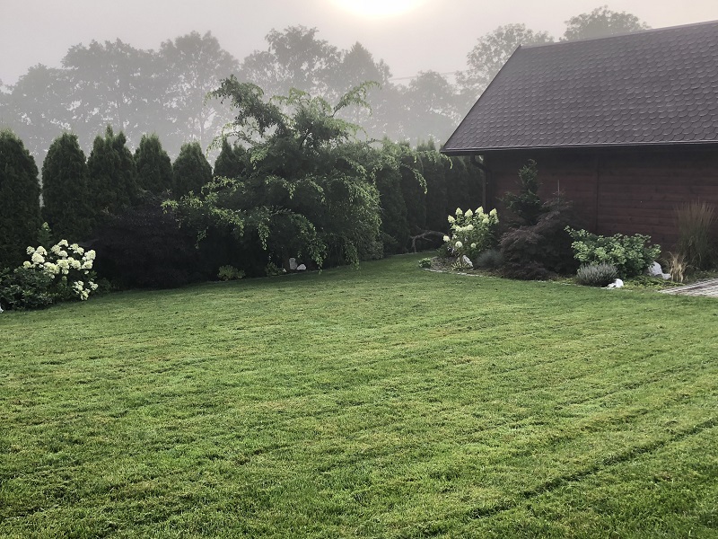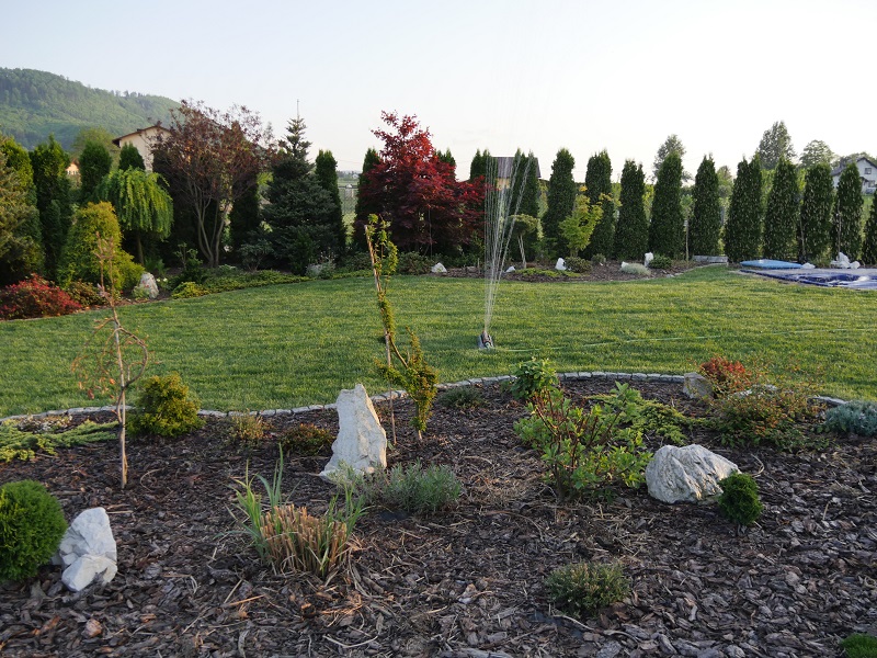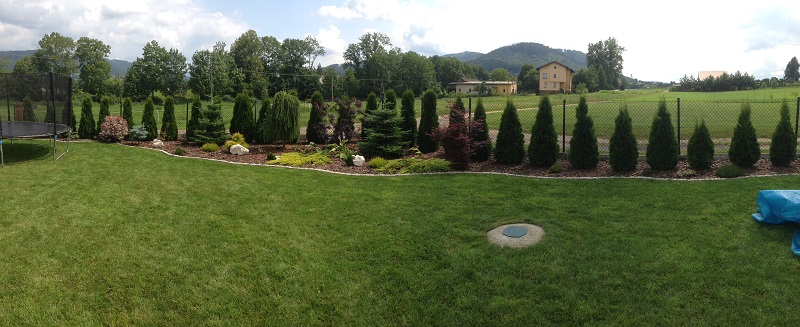 Chyba w 2010 roku , żeby przynajmniej trochę odgrodzić się od koszmarnie mocno wiejących wiatrów, posadziliśmy prawie 140 thuj, a razem z nimi pierwsze drzewka i krzewy. I tak się zaczęło: sadzenie, przesadzanie, szukanie miejsca na nowości i po paru latach poszerzanie trawnika... a jakże to już też za mną